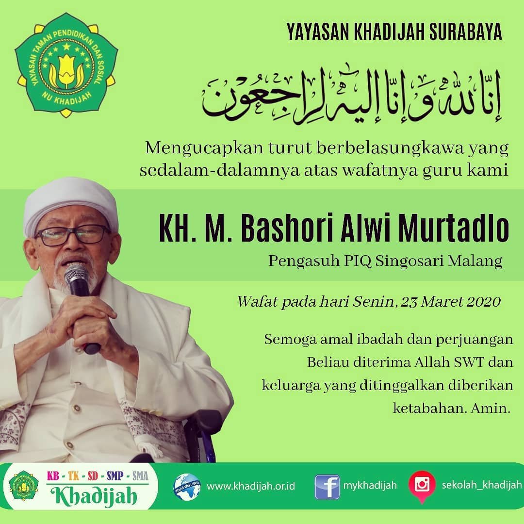 Senin, 23 Maret 2020 pukul 15.31 Ulama Sepuh KH. Basori Alwi, Pengasuh PIQ Singosari wafat. Berita ini menambah duka masyarakat nusantara. Mari sejenak mendoakan beliau dan kembali mengenang jejak-jejak kehidupan yang bisa diteladani.