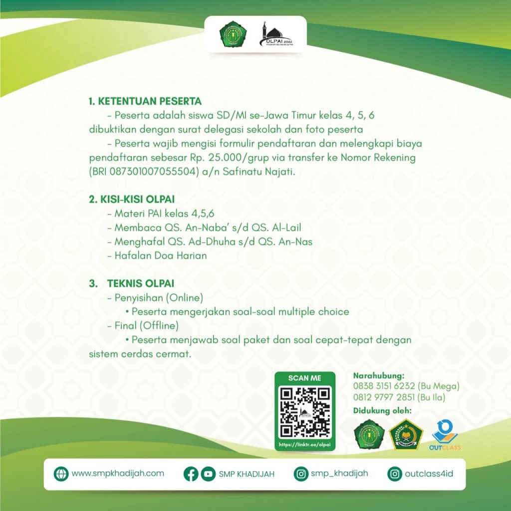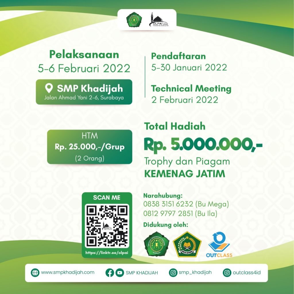 SMP KHADIJAH SURABAYA DIDUKUNG KAKANWIL KEMENAG JATIM SELENGGARAKAN OLIMPIADE PENDIDIKAN AGAMA ISLAM (OLPAI) TINGKAT SD/MI SE-JATIM